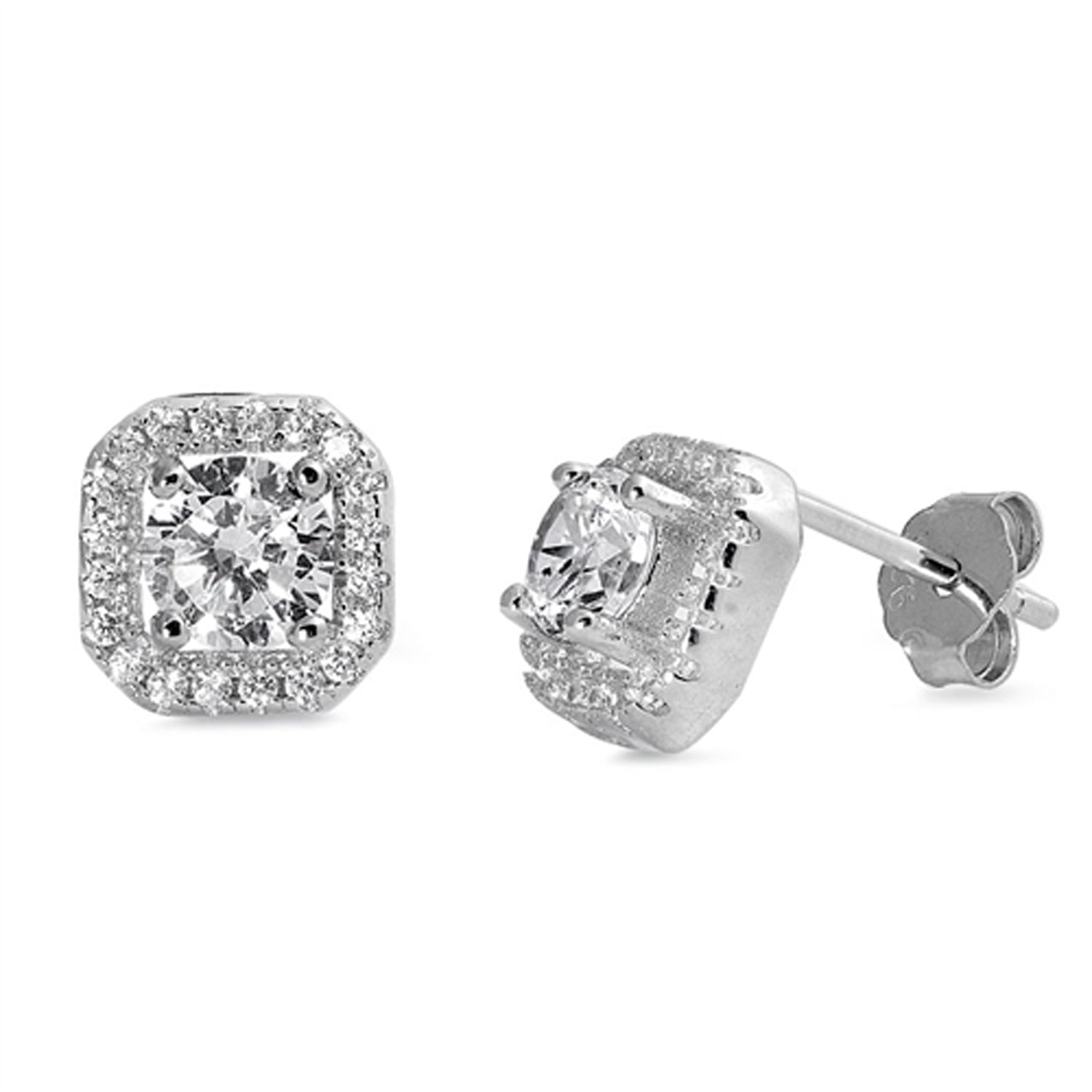 Vintage Halo Cubic Zirconia Round Stud Earrings in Sterling Silver