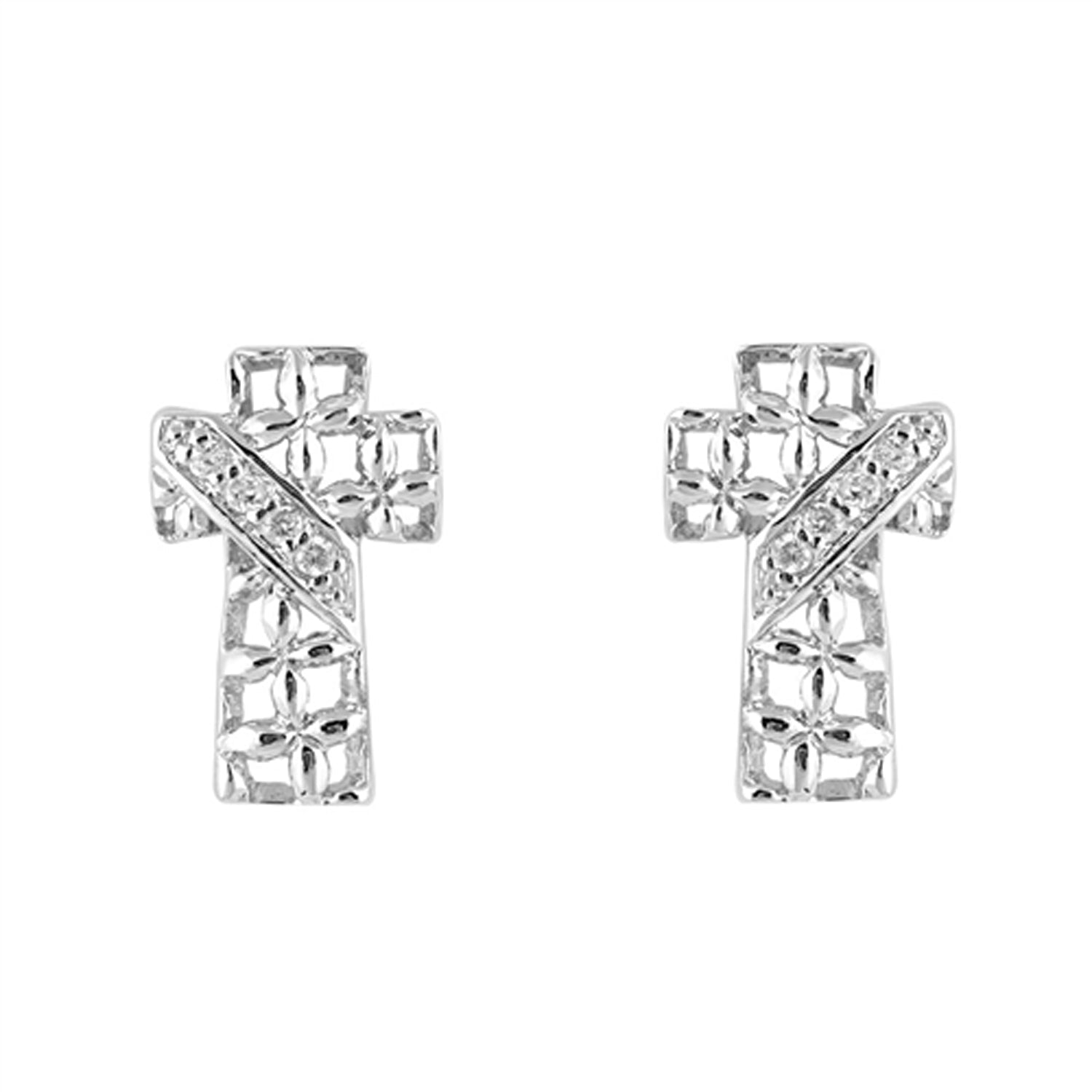 Filigree Cubic Zirconia Cross Stud Earrings in Sterling Silver