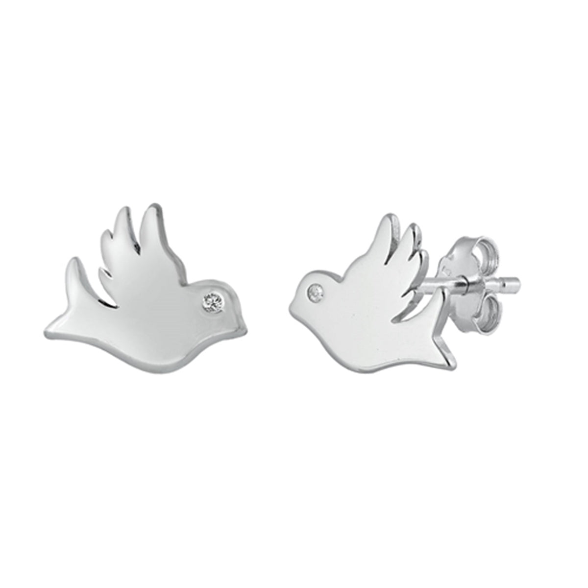 Spirit Dove Cubic Zirconia Stud Earrings in Sterling Silver