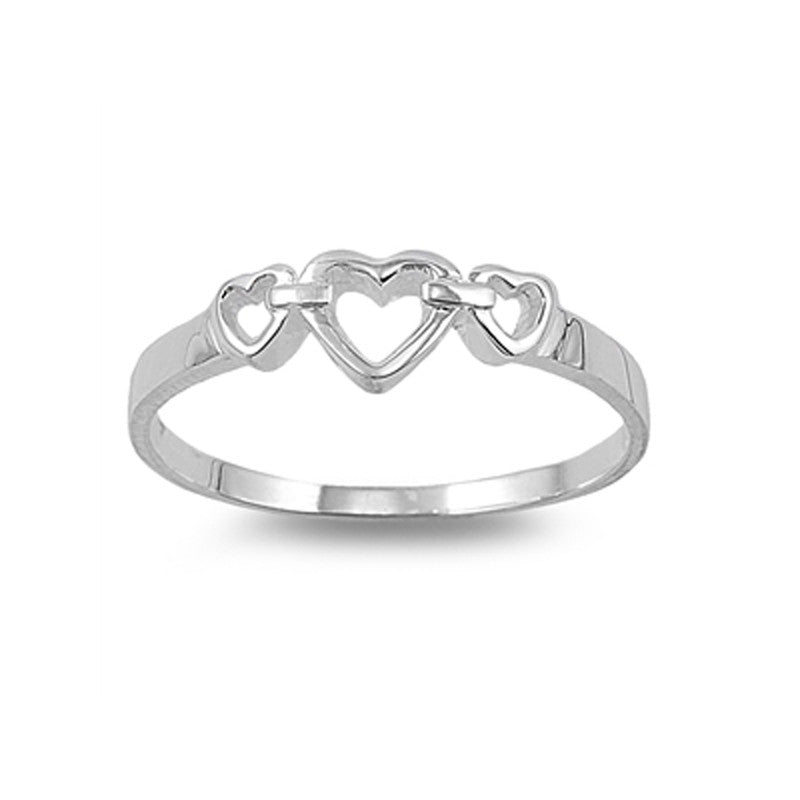Linked Three Hearts Ring in Sterling Silver