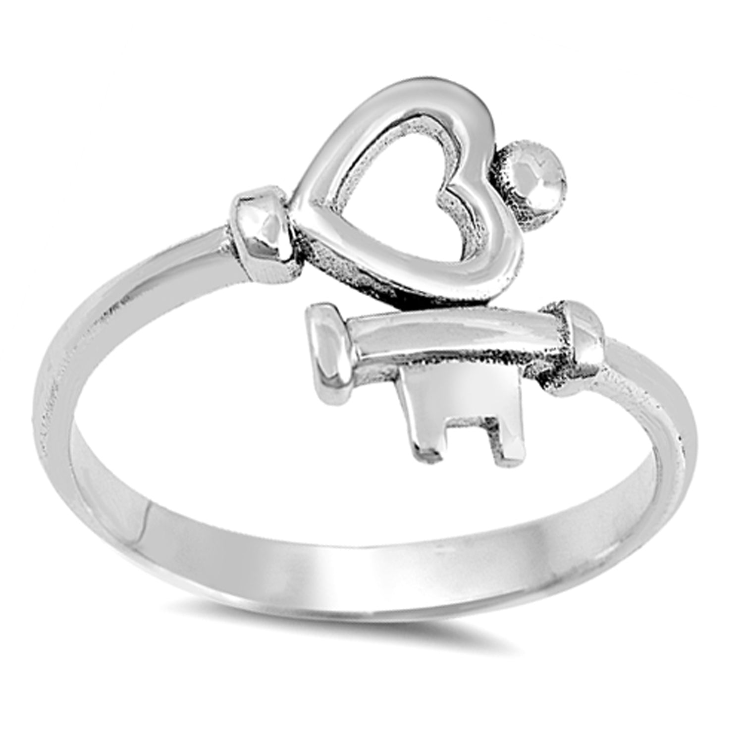 Heart Key Bypass Ring in Sterling Silver