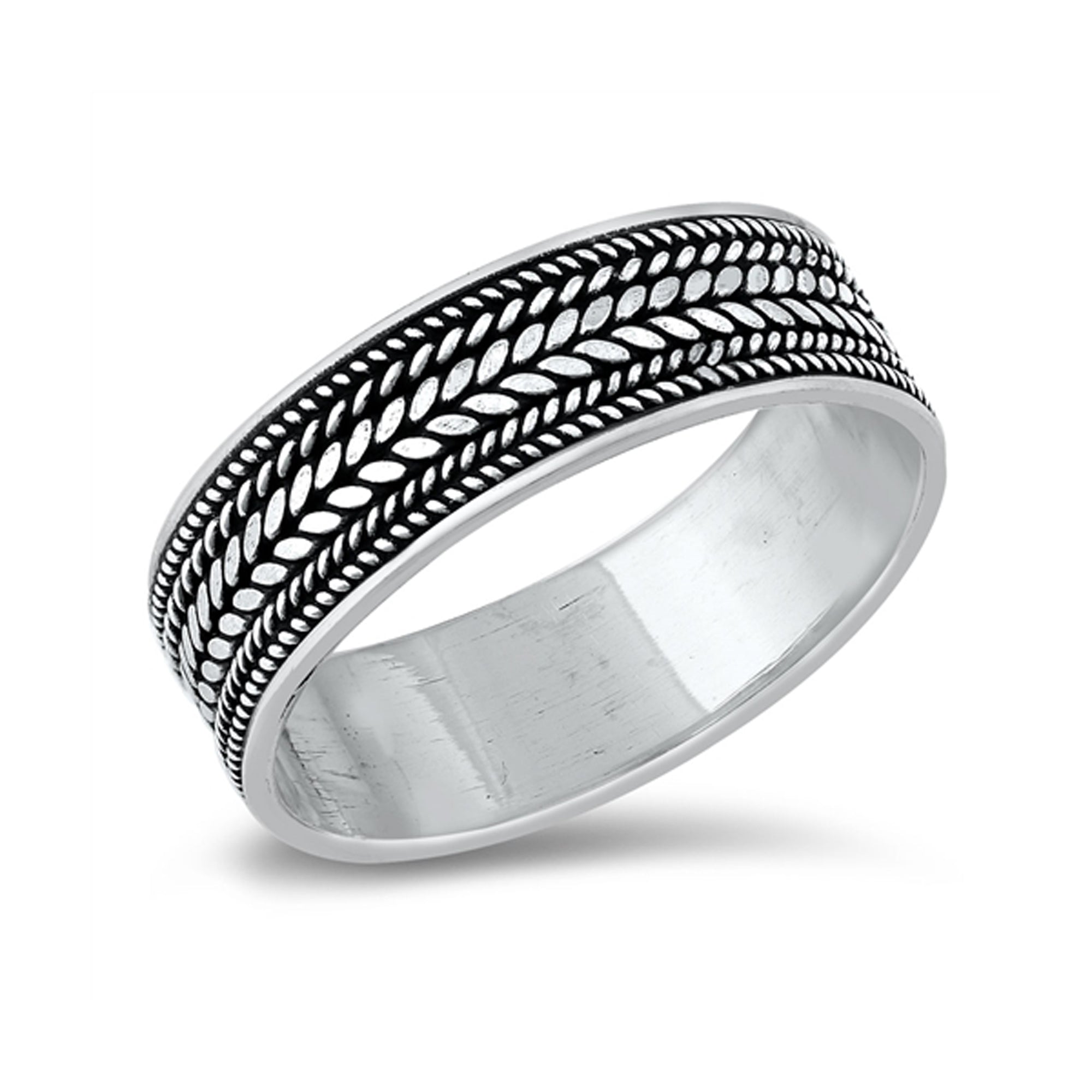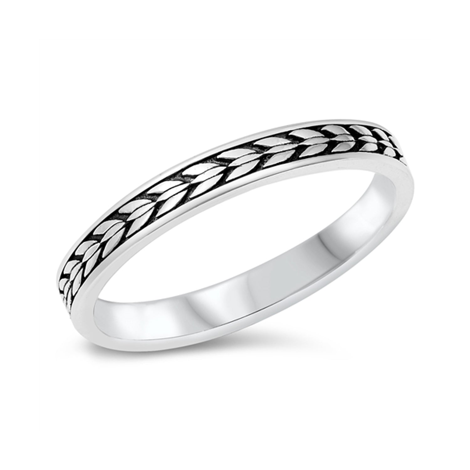 Wheat Design 3mm Wedding Band in Sterling Silver
